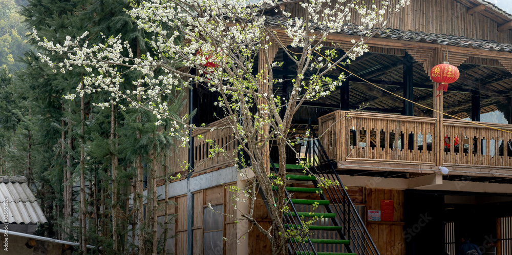 The peach blossoms blooming in spring on area the high mountains in Son La province, Vietnam.