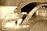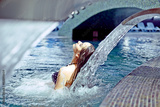 beautiful woman in waterfall jet, spa hydrotherapy