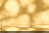 Gold Stucco Table with Nature Shadow on Concrete Wall Texture Background