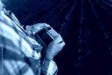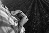 Close up of senior farmer hands in corn field controlling drone for examining crop.
