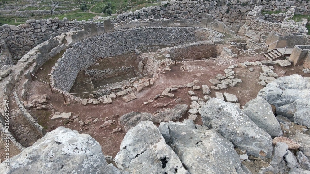Greece 05,25,24 Archaeological site of ancient citadel of Mycenae , north-eastern Peloponnese, Greece - Greek settlement of the 12th century BC. e. with the ruins of the acropolis Agamennone
