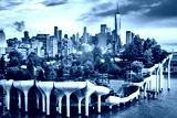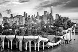View of Lower Manhattan skyline at sunset, behind the Little Island public park.
