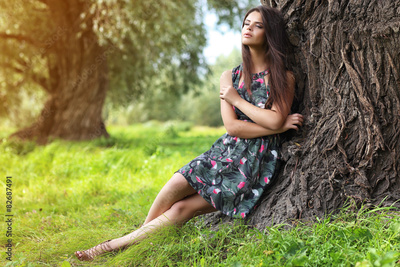 Portrait of young beautiful woman outdoors