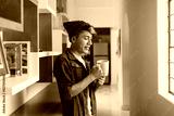 Latin homosexual man with cup of tea relaxing near window at home in Mexico, Hispanic people from lgbtq community in Latin America