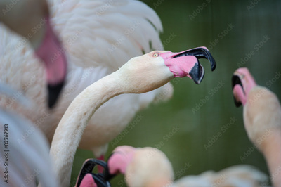 Flamingo fight with beaks