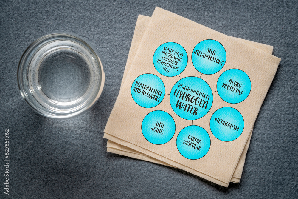 health benefits of hydrogen water infused with molecular hydrogen gas, diagram infographics