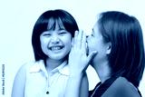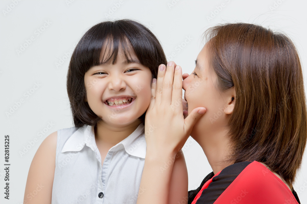 Portrait of Asian mother whispering to her daughter