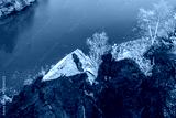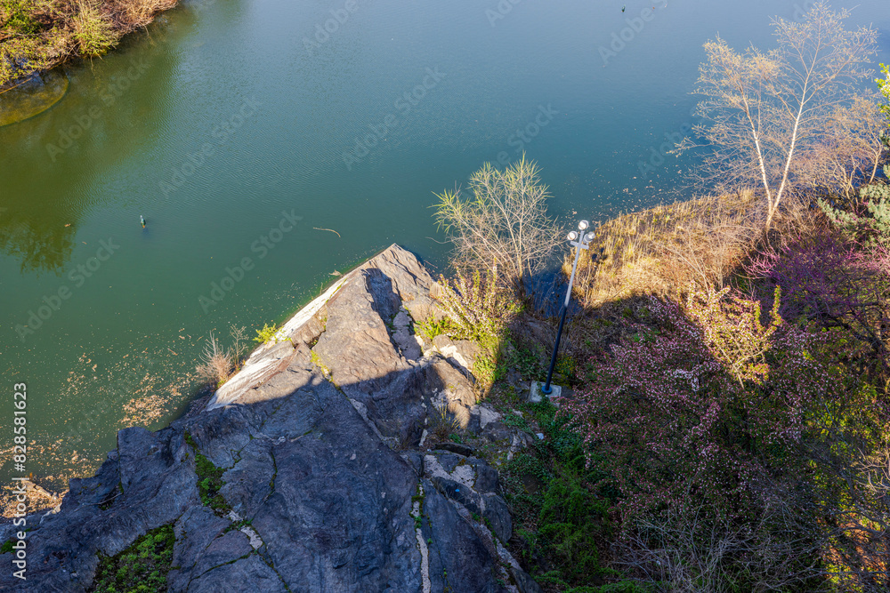 Beautiful view from the top of Belvedere Castle of the lake in Central Park, Manhattan. New York. USA.
