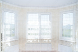 Sunlight fills spacious room through large windows, creating bright, inviting space. softness, while minimalist decor enhances serene ambiance. background for interior design concepts