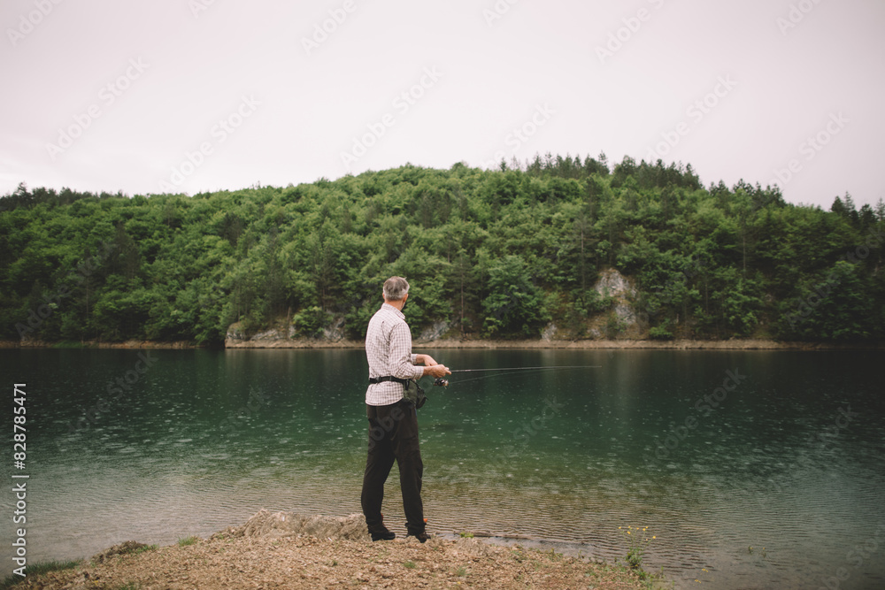 Rear view of man fishing