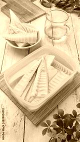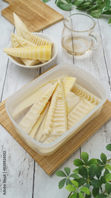 タケノコの水煮を水に浸して容器に入れて保存する イメージ