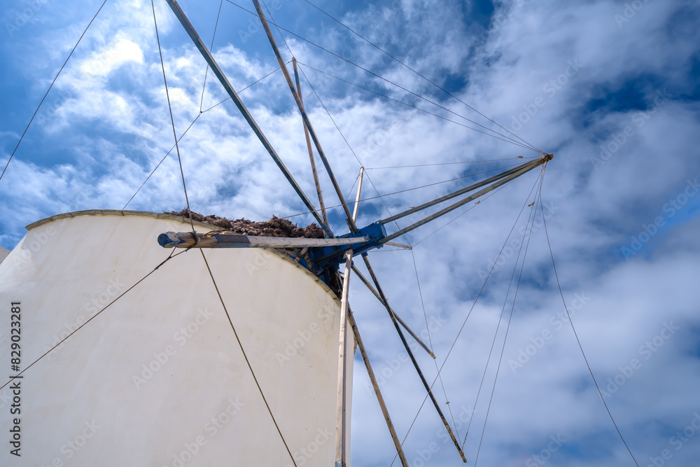 View of an old traditional windmill in Ios Greece