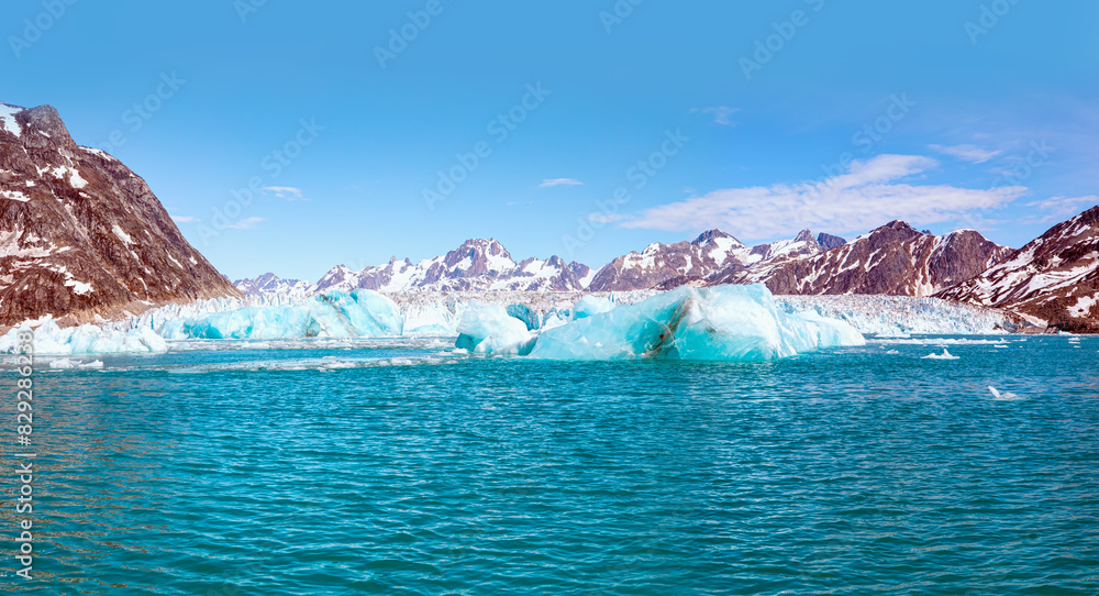 Melting icebergs by the coast of Greenland, on a beautiful summer day - Melting of a iceberg and pouring water into the sea - Greenland