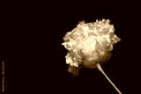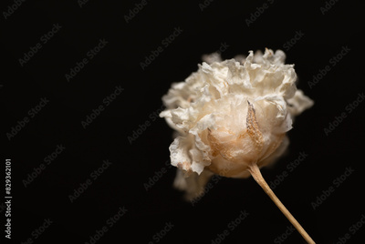 Single Romantic fragile dried beige gypsophila flower with dark background and place for text macro