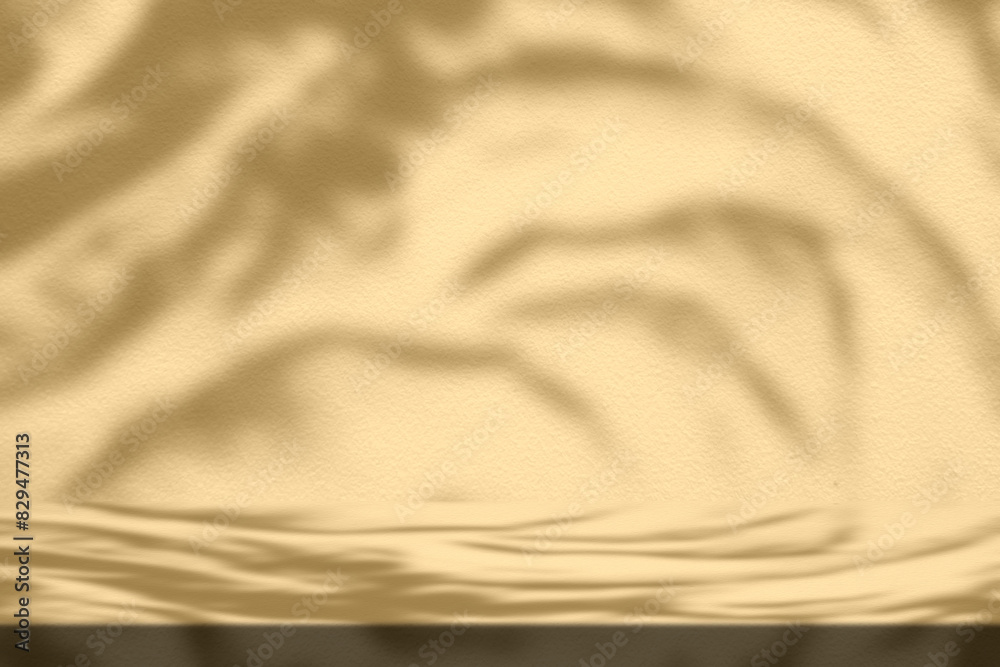 Gold Stucco Table with Nature Shadow on Concrete Wall Texture Background