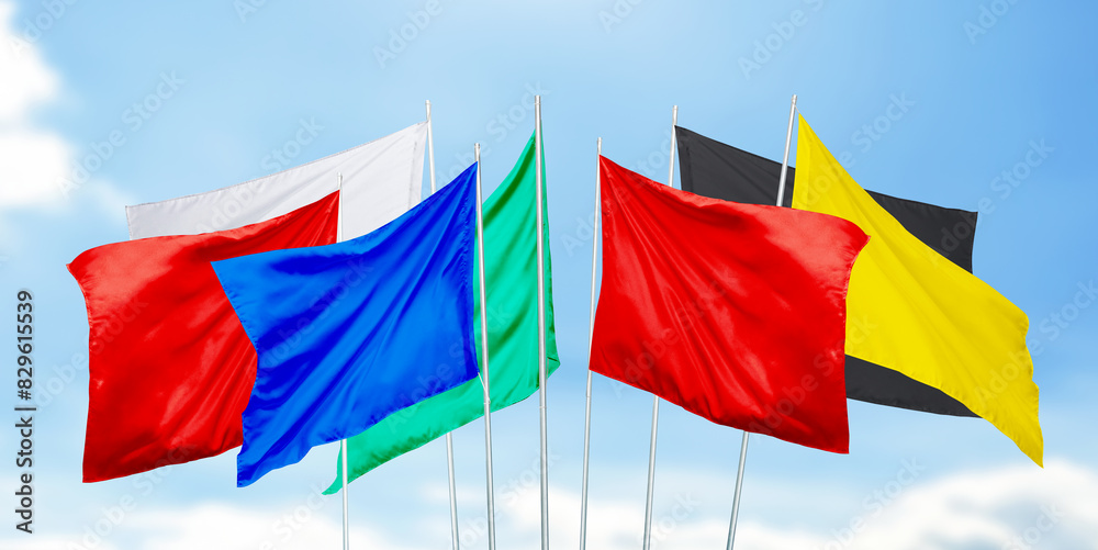 Clean colored flags on sports competitions. Perfect for football, soccer championships, with vibrant hues and clean design for versatile use