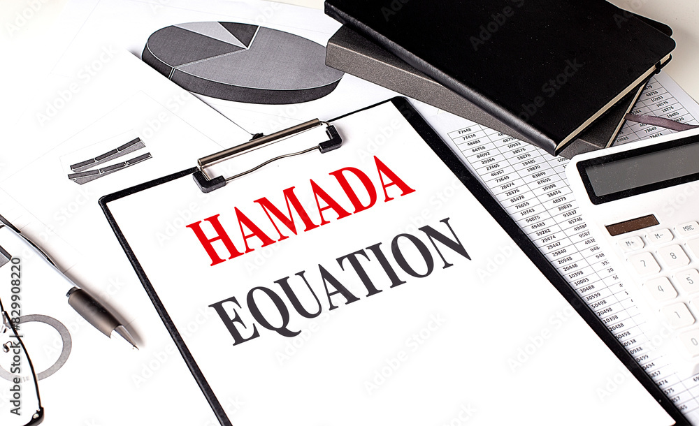HAMADA EQUATION text on clipboard on chart with notebook and calculator