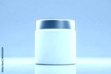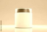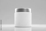 Mockup White Cosmetic Cream Jar Silver Lid, Purple Background Minimalist Design white blank Skincare Product Container