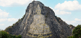 Khao Chi Chan Buddha. Big buddha with sky background at Pattaya. Thailand. Thai language, translate: created in 1996, buddha name is Phra Puttha Maha Wachira Uttamopat Satsada.