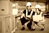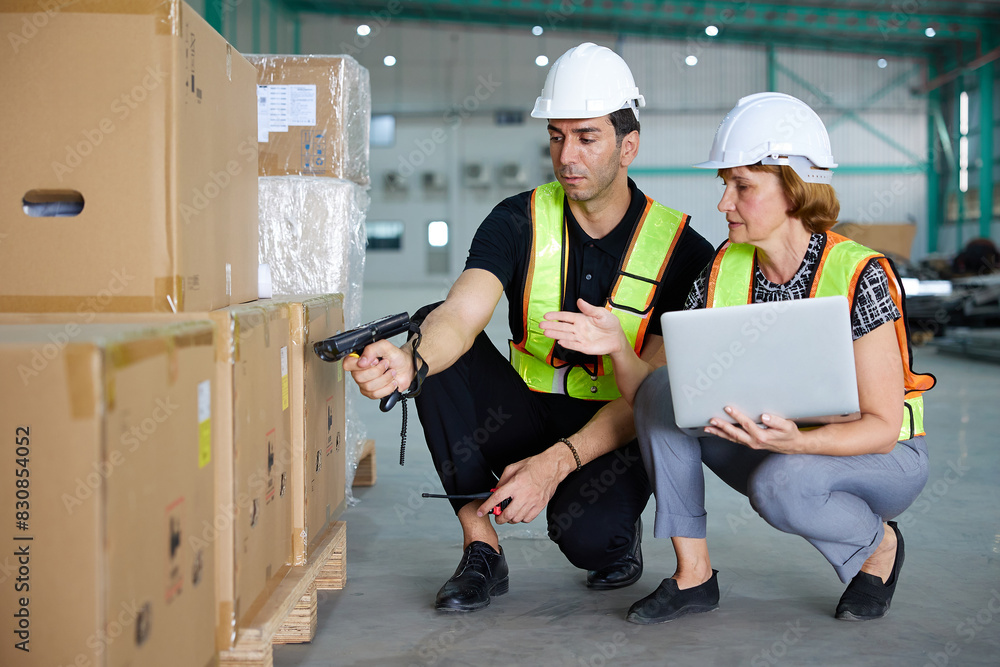 workers using barcode scanner in the warehouse storage