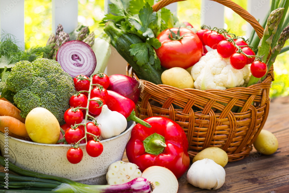 Mix of fresh vegetables in wicker basket