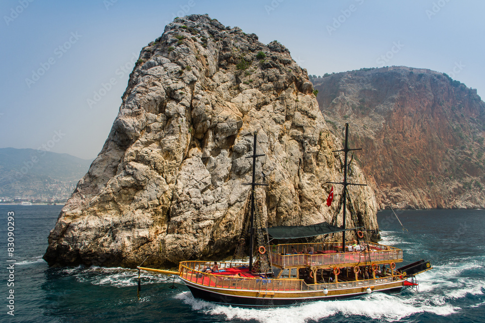 Walk on a beautiful yacht in Mediterranean sea, Alanya.