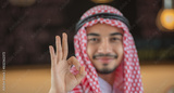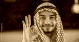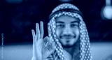 A Saudi Arabian man in traditional dress giving a thumbs up.