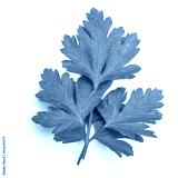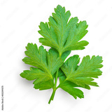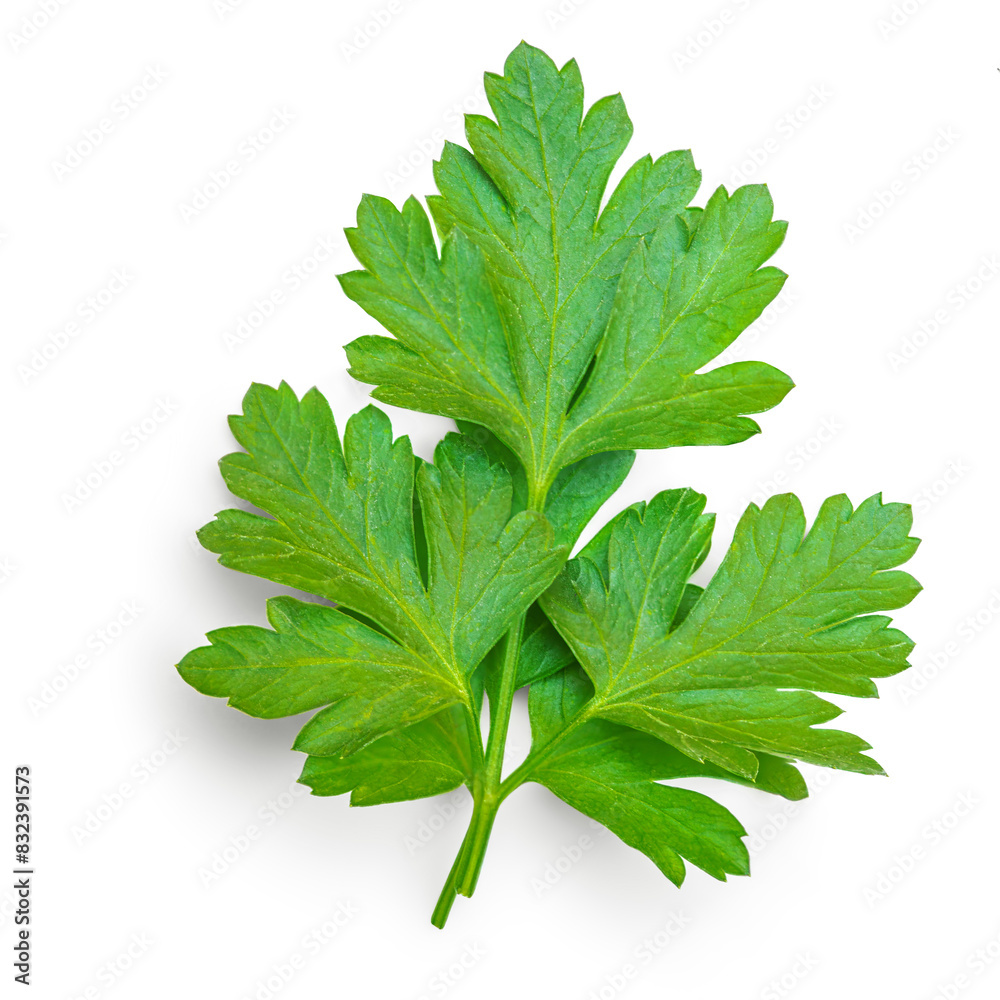 Fresh parsley leaf. Parsley leaf isolated on white. Cilantro leaves, green garden parsley twig close up. Top view.