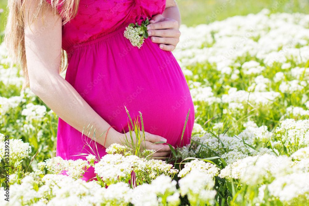 Pregnant woman holding her belly