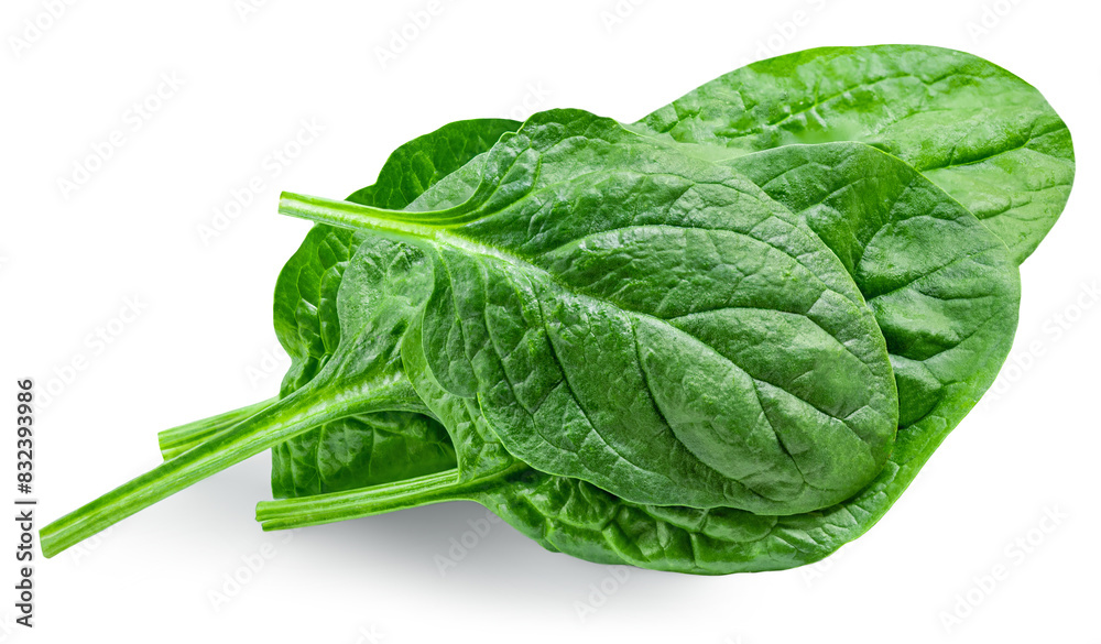 Spinach leaves isolated on white background. Baby Spinach leaf Flat lay. Top view..