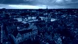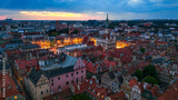 aerial evening view of the city center of poznan in poland in spring