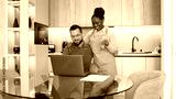 Man working online and enjoying with his wife