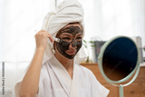 Beautiful woman spa and treatment skin of face. face of a healthy woman apply cream. Advertisement for skin cream, anti-wrinkle, baby face, whitening, moisturizer, tighten pores serum, youthful
