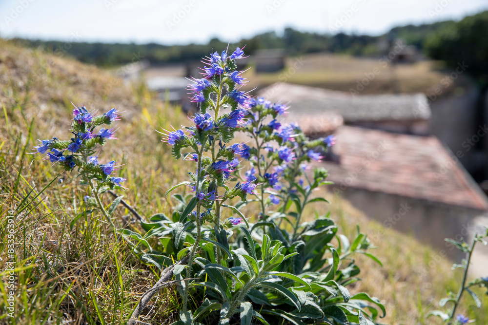 Pied de fleurs de couleur lilas d'une vipérine ou d'une algue bleue (Echium vulgare) dans une lumière douce