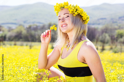 Young beautiful girl in the yellow field