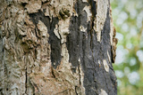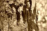 Die Rußrindenkrankheit, verursacht durch den Pilz Cryptostroma corticale an einem abgestorbenen Ahorn in Magdeburg in Deutschland