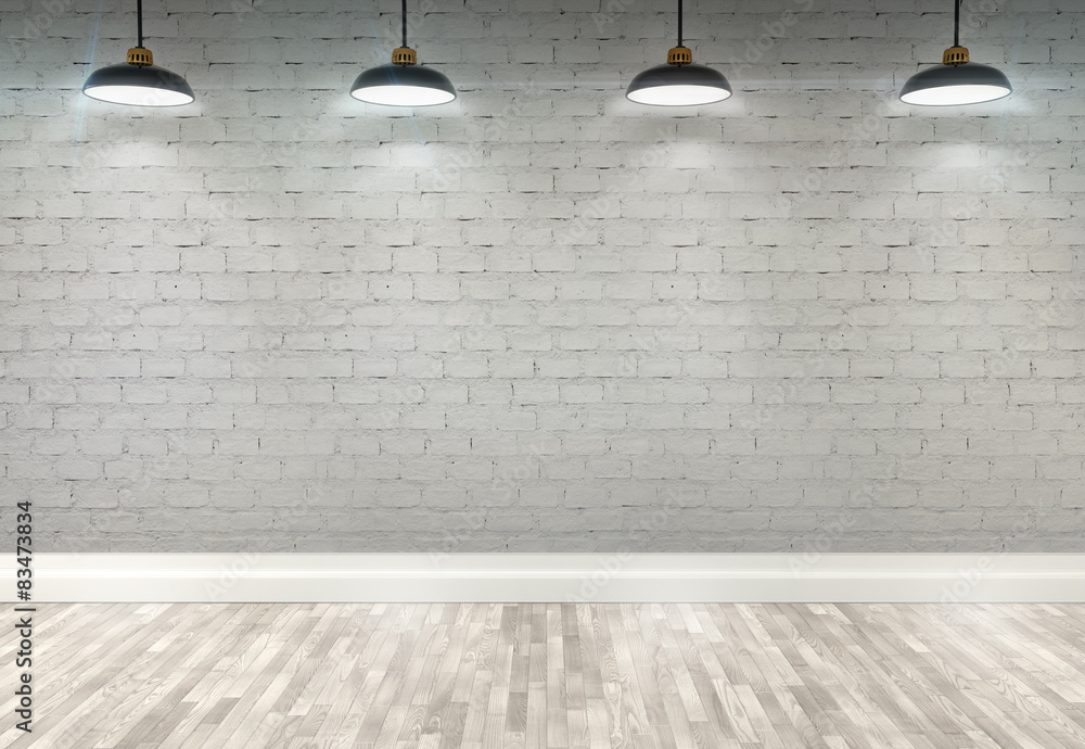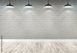 3d brick room with ceiling lamps