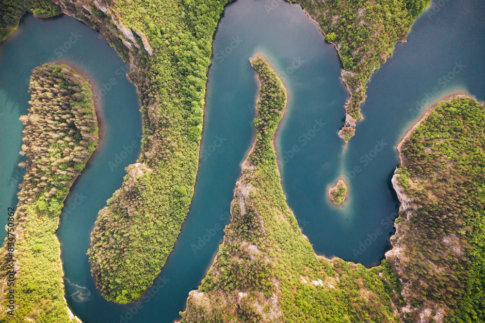 Mountain river meanders directly above
