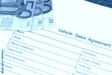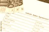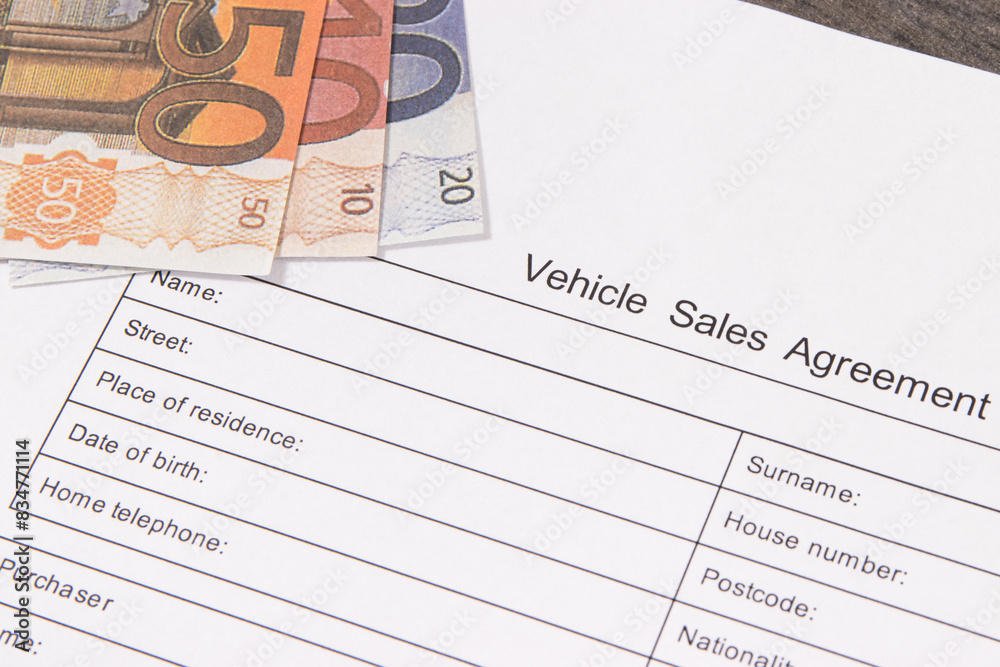 Vehicle sales agreement and euro banknotes. Sales, purchases new or used vehicle