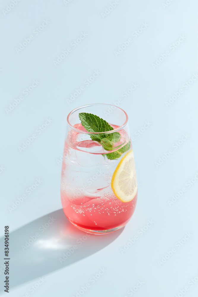Refreshing Summer Lemonade with Strawberry Syrup and Lemon Slice in Highball Glass**
