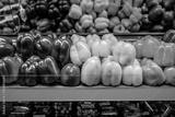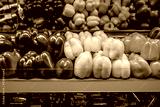 Raw juicy red, yellow and orange bell pepper on the shelf in the supermarket. Sweet pepper on grocery store display