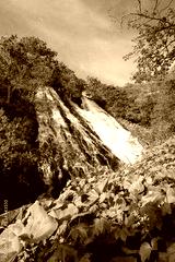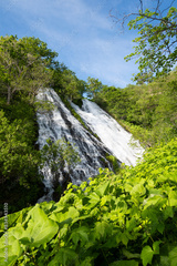 オシンコシンの滝、世界遺産知床、新緑のフキの葉
