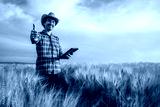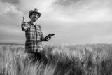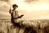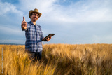 Portrait of happy farmer in his wheat field. He is satisfied with crops.