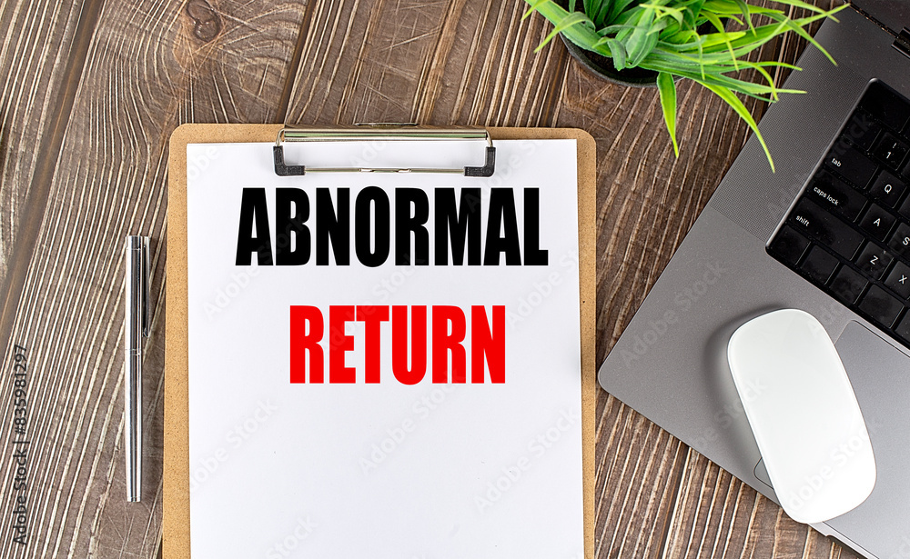 ABNORMAL RETURN text on clipboard paper with laptop, mouse and pen