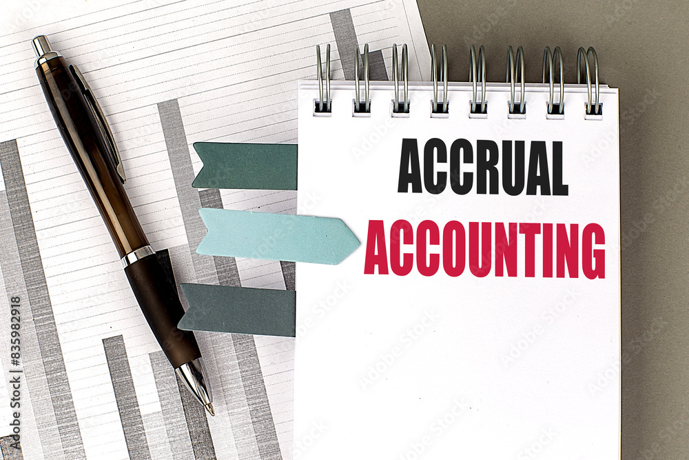 ACCRUAL ACCOUNTING text on notebook with chart on gray background