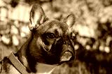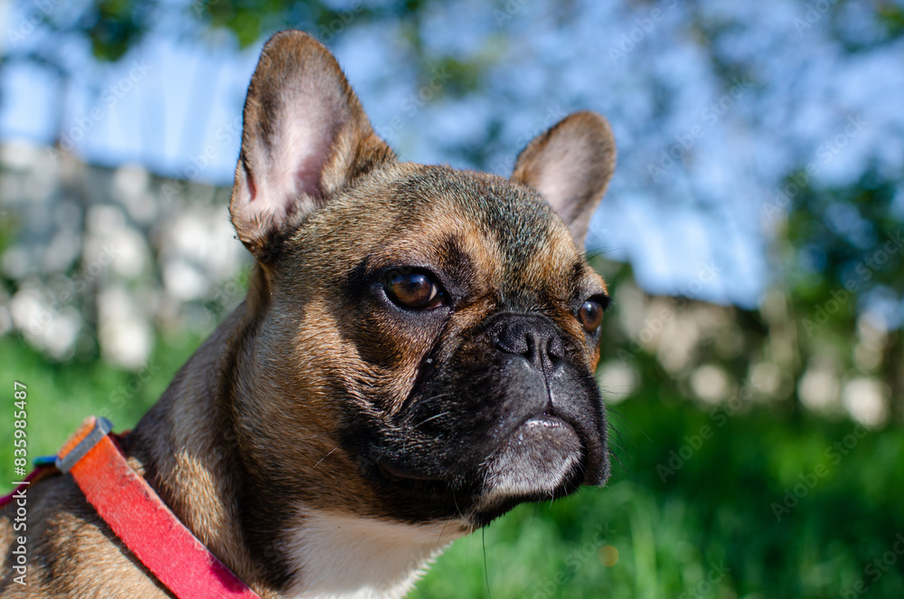 French bulldog. Pedigree dog walking. Dog training. Pet.