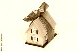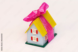 Toy House With Pink Bow on White Background