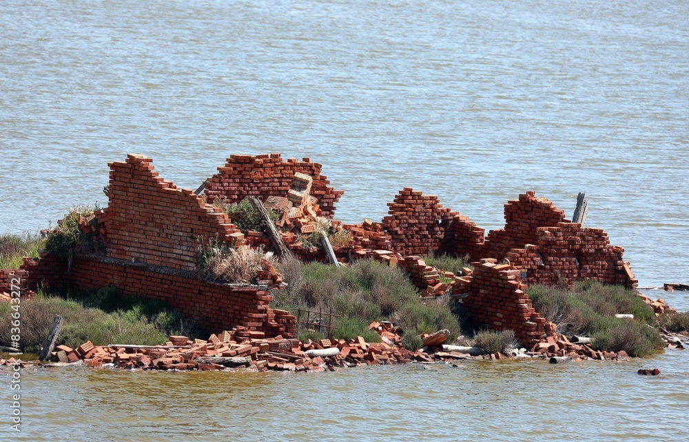 Brick house destroyed in water after natural disaster