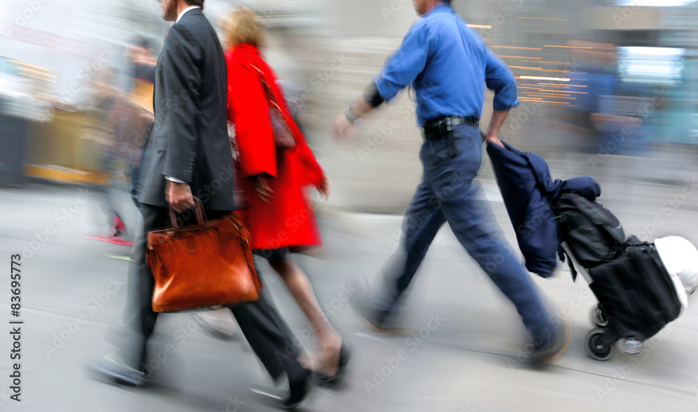 motion blurred business people walking on the street