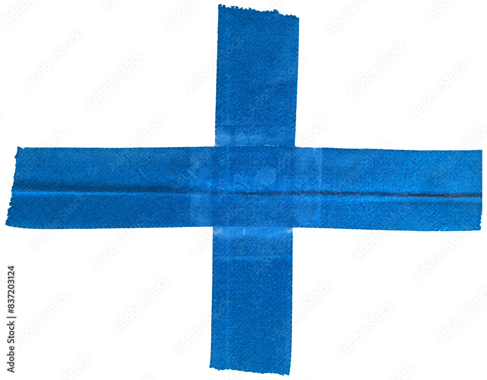 blue cross made of paper, transparent background, vector illustration style, simple lines, highdefinition details, best quality, crossshaped paper tape.